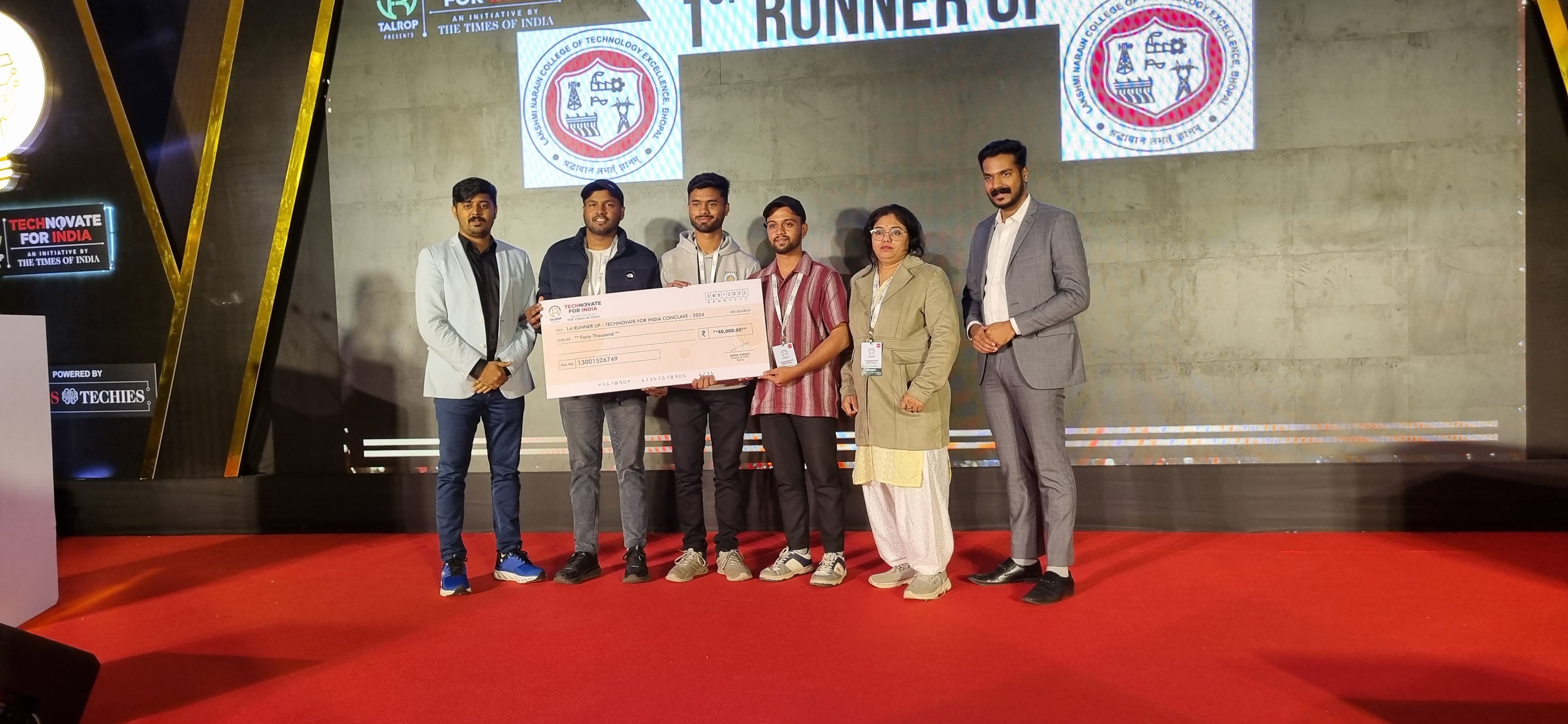 🏆 1st Runner Up at Tech Conclave — Recognized by Talrop & Times of India